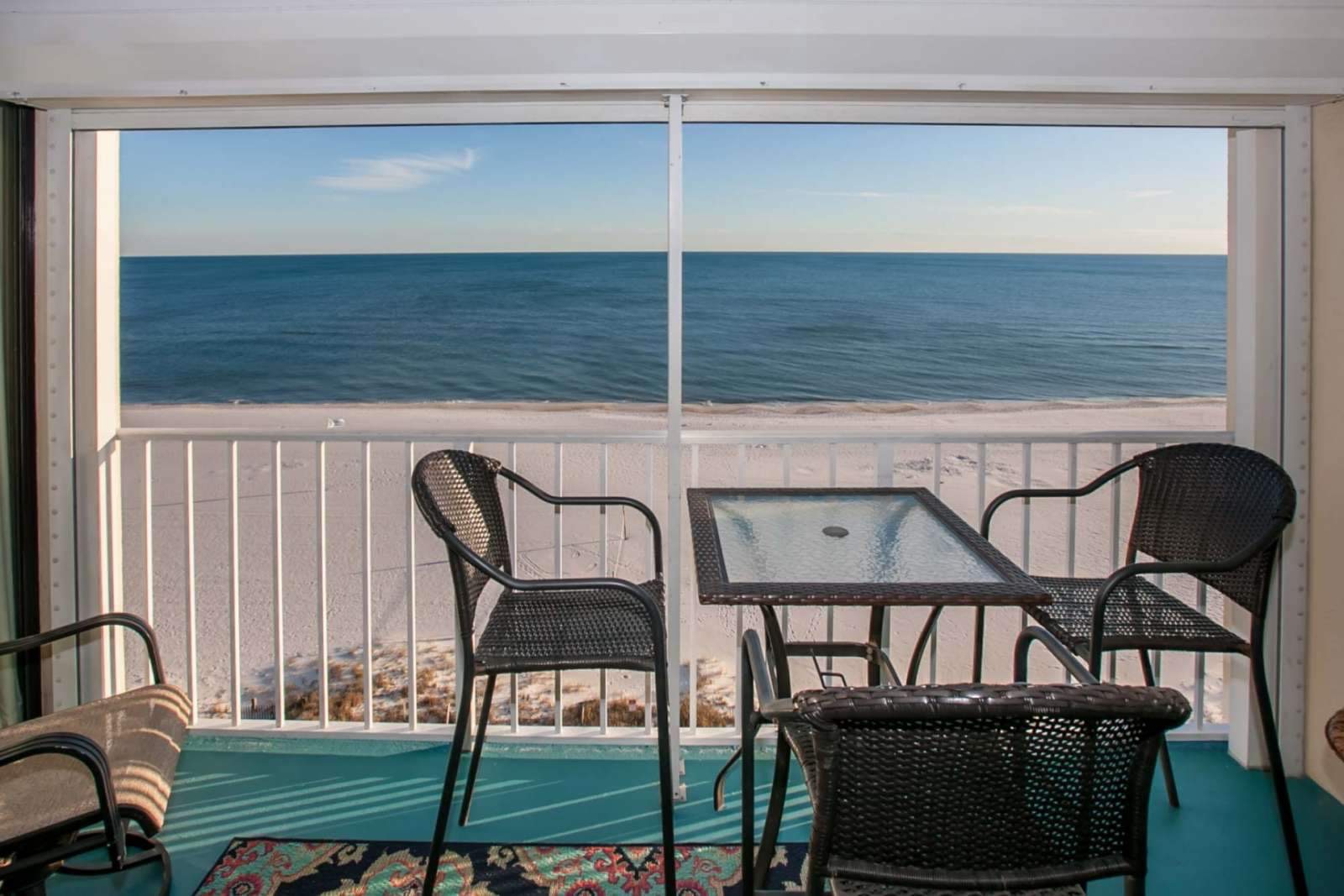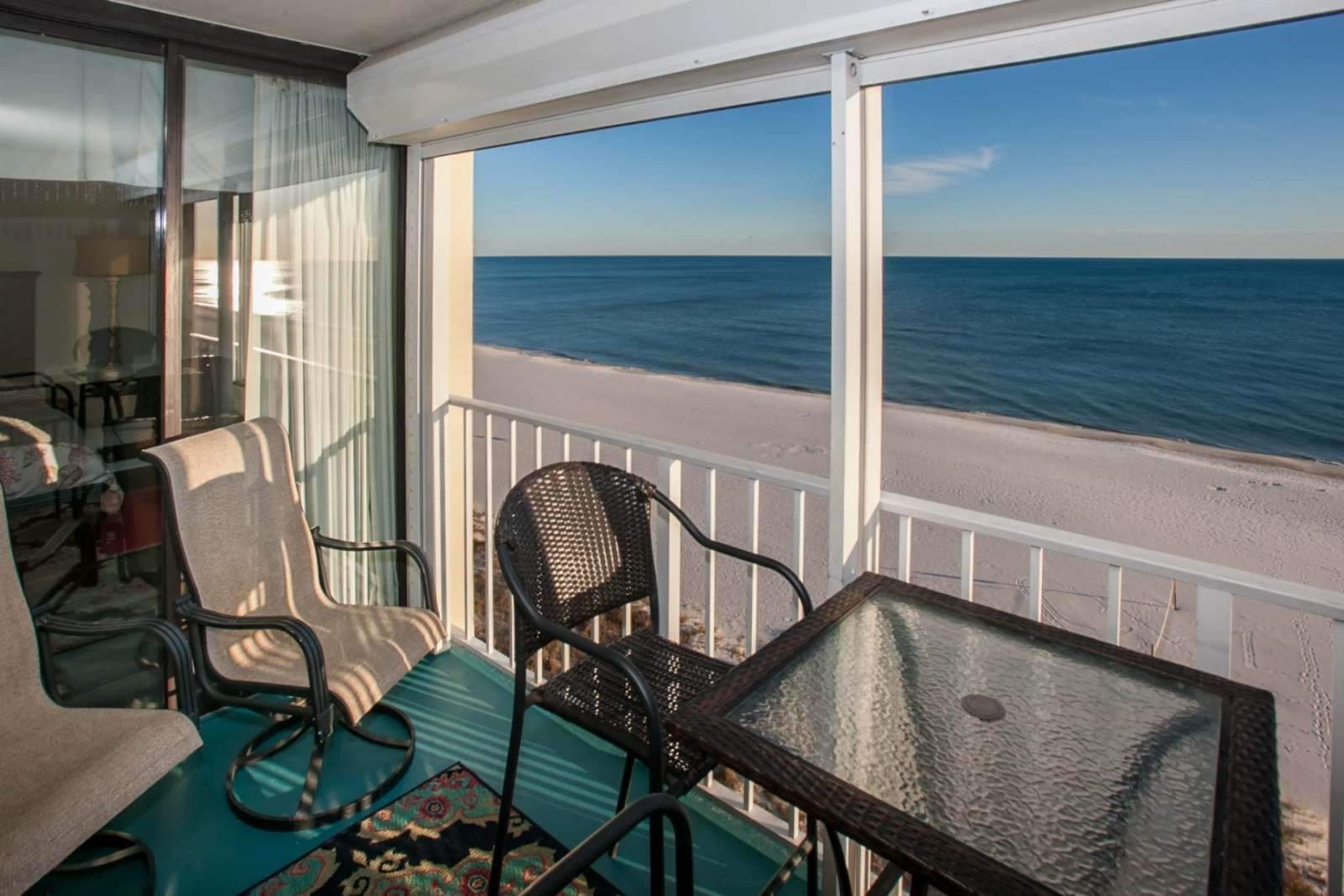 Incredible views can be enjoyed from the spacious beachfront balcony. Pro tip: wake up early to watch the sunrise to the east and catch a glimpse of the dolphins playing in the surf or the Blue Angels zipping by on a practice run from nearby Pensacola Naval Base.