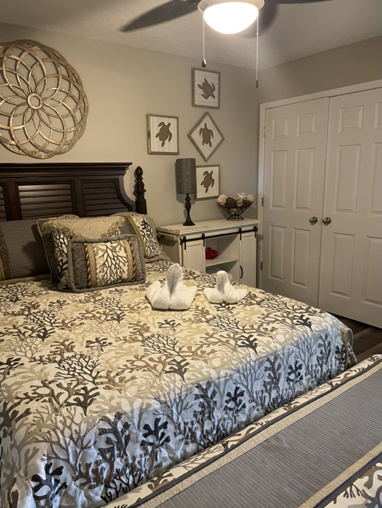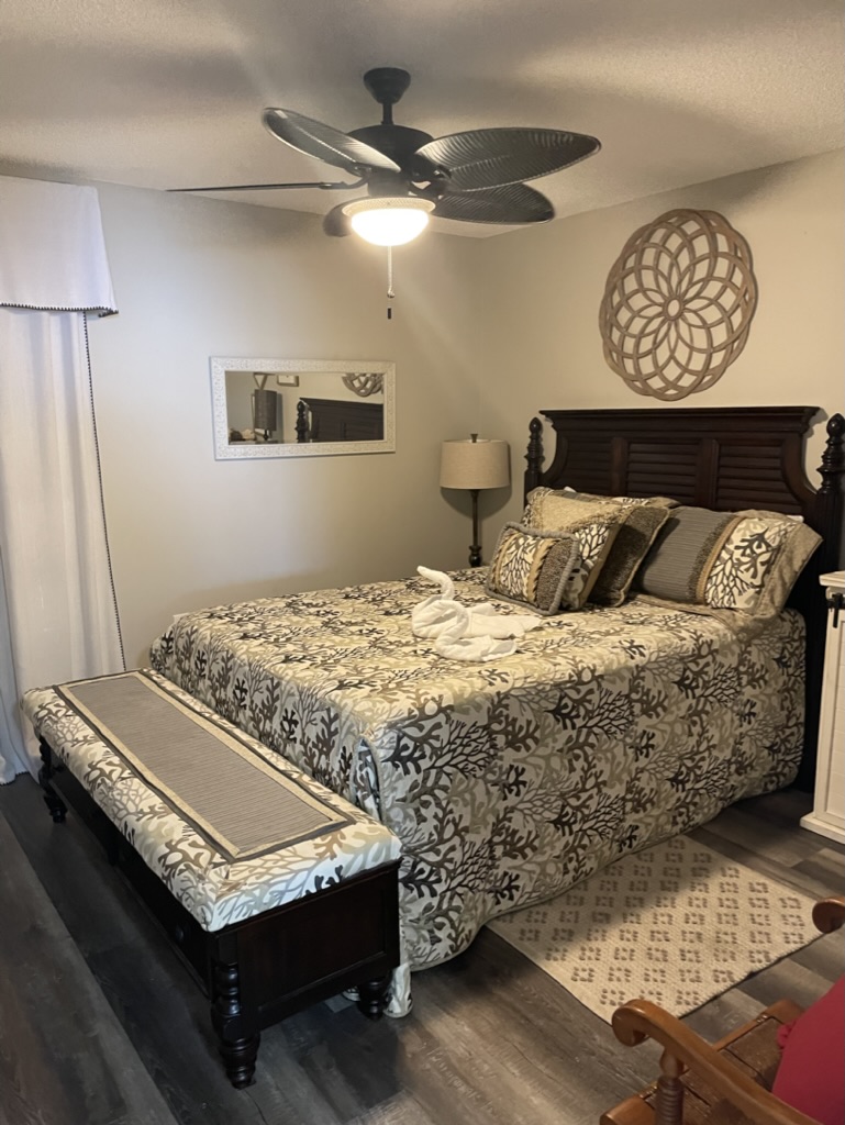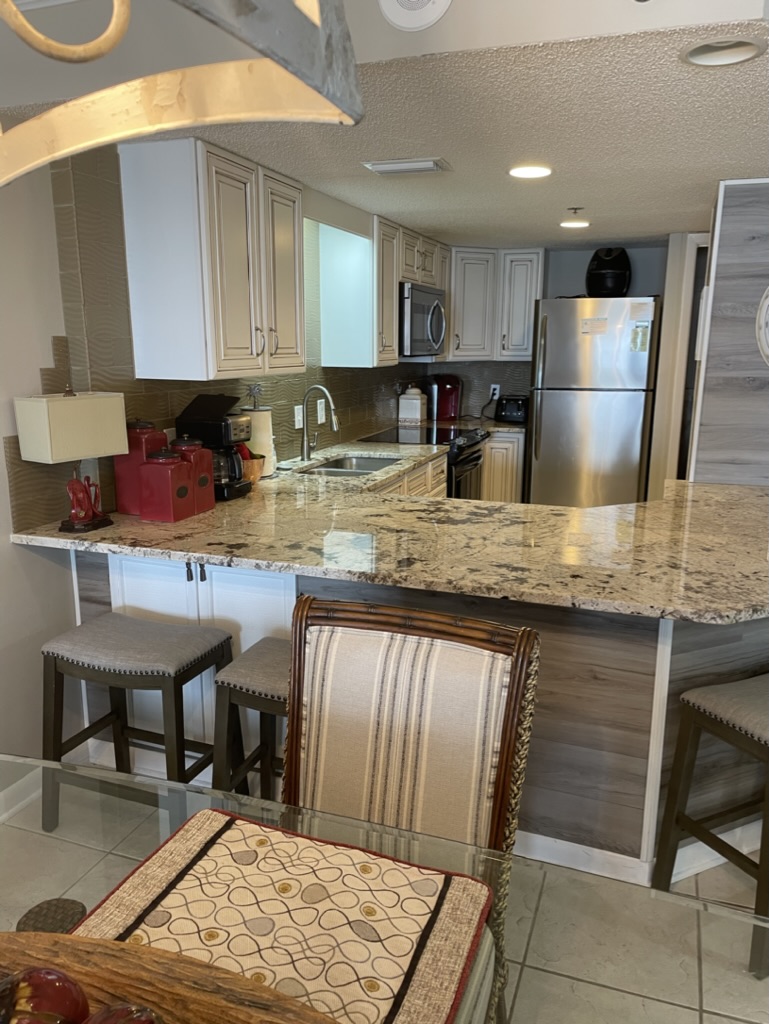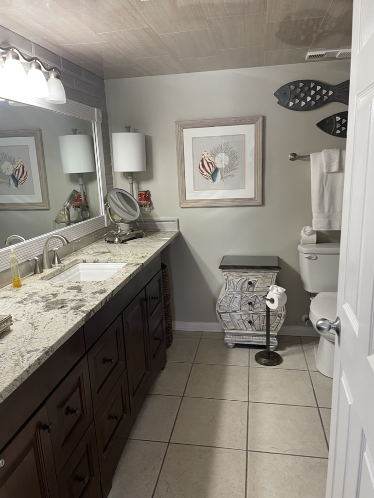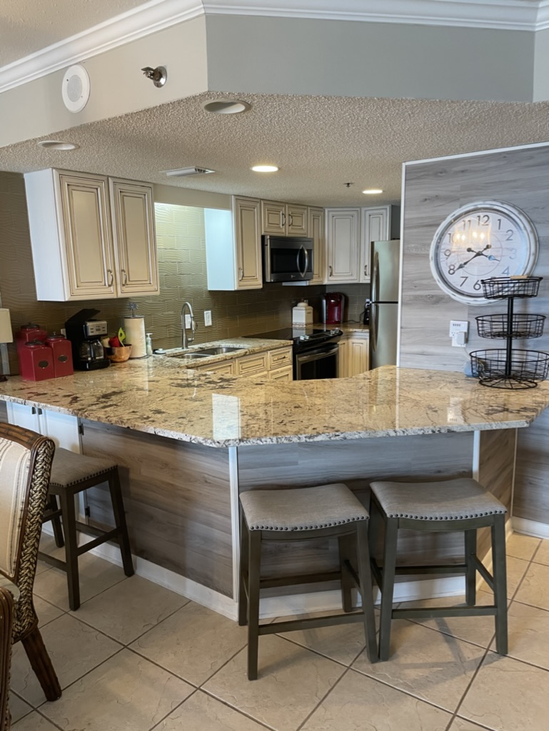 This upscale, spacious condo has recently been updated with fresh paint throughout, luxury vinyl plank flooring in both bedrooms, and beautiful new granite countertops in the kitchen and primary bath. With a king sized bed in the primary bedroom, a queen in the 2nd bedroom, and a pull-out sofa, this comfortable unit sleeps 6.
